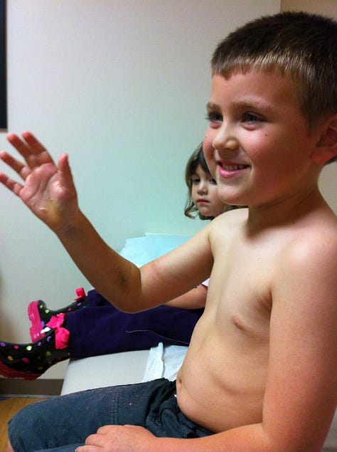 I called the pediatrician - my beloved Dr. Malphus - who told me to go directly to the emergency room. My daughter and I talked to my son all the way there, and slowly got the story of his morning. My heart broke for him, and the only thing I was focused on for the next several hours was making sure he got the care he needed, both from me, his mom, and from the doctors and nurses at the hospital, who were wonderful.
