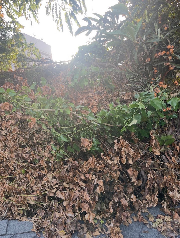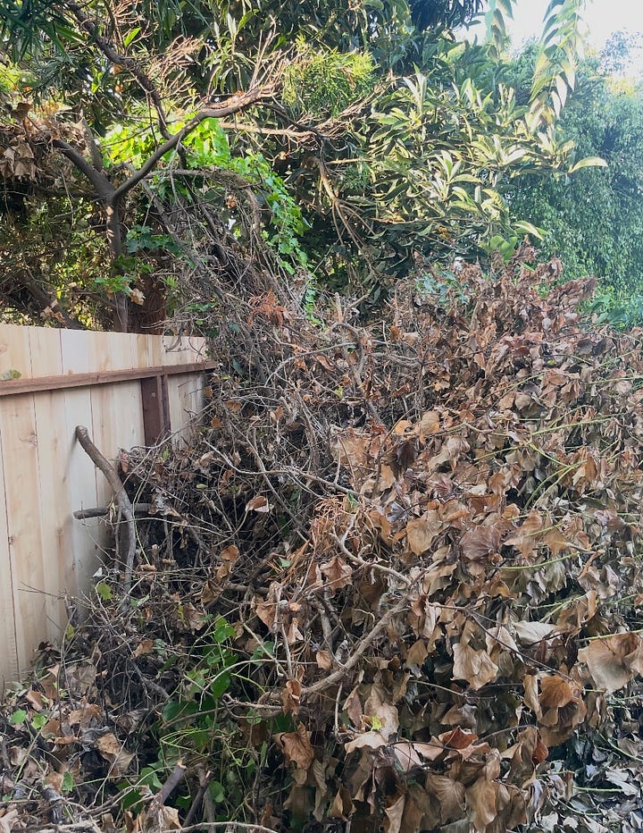I took pictures and and texted them to her, and then I called. I was friendly all things considered. Said I’d been away for the weekend, had come back to find this situation, and was worried about the fire hazard. Did she know when the gardener was planning to come by?